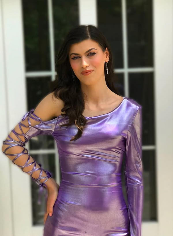 Sexy Purple Mermaid One-Sleeve Long Formal Dress to Impress,MB11222