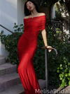 Sexy Red Mermaid Off-shoulder Long Formal Dress to Impress,MB11228